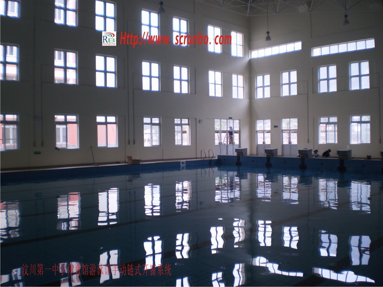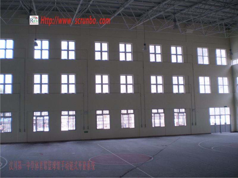 汶川縣****中學(xué)即原汶川威州中學(xué),該項目系5.12汶川特大地震后的災(zāi)后援建項目,該項目由廣東省江門市援建,占地31100㎡,總投資超過10億。手動鏈?zhǔn)介_窗系統(tǒng)為新建室內(nèi)體育館窗控工程,體育館由室內(nèi)籃球館和室內(nèi)游泳館兩部分組成,于2009年6月進(jìn)場施工,2009年8月完工,共計168㎡,共采用鏈盒224只,重型手搖機(jī)28套,采用1控8的控制方式,即1套重型手搖機(jī)控制8扇窗戶。