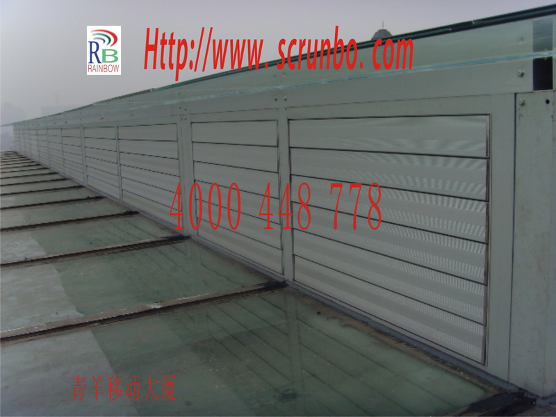 青羊移動采光中庭鋁合金電動通風百葉窗,125mm百葉窗40㎡,百葉專用電機12臺,無線電遙控及風雨感應自動關窗控制。