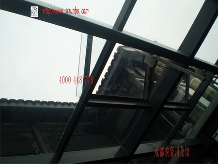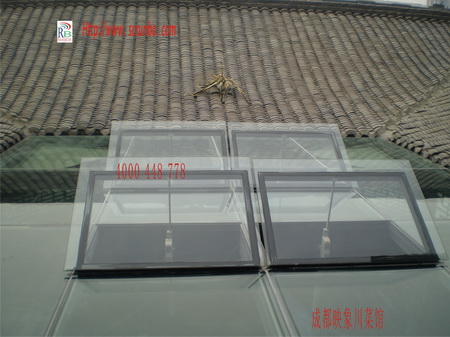 四合院采光中庭通風天窗,專用鋁合金天窗,組角焊接,齒條式開窗機RB-CT-500/1200N,無線電遙控及風雨感應器自動控制。