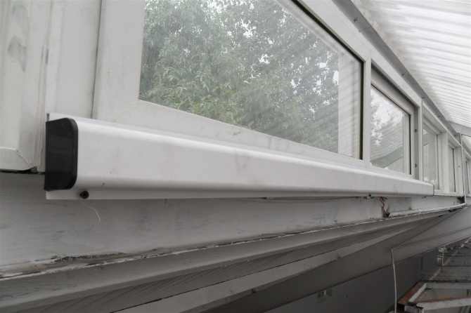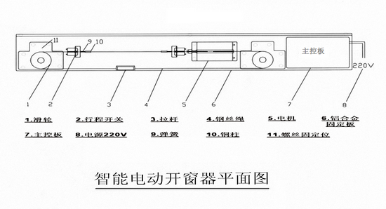 上述窗框的四周與玻璃接觸部位設有密封條;并在窗框上設有電機控制開關按鈕。上述窗框及驅動裝置外殼采用鋼板沖壓成形,便于組裝和拆卸;表面經過噴涂處理光澤艷亮,耐腐蝕,還可以根據不同顧客的需求更換噴涂顏色,可實現很好的裝飾效果。本推拉窗可以根據需要制成不同結構,與現有技術比較具有密封性好,滑動靈活,操作方便等優點。