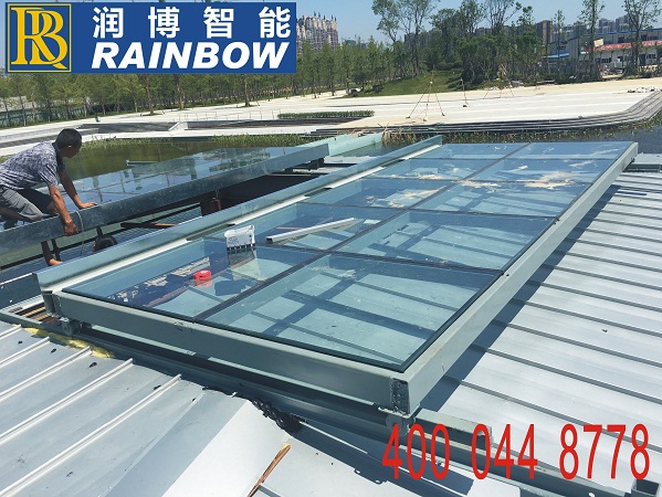 5、可與消防系統聯動達到自然排煙窗功能,火災等應急情況下可開啟屋面強制開啟排煙,可手動按鈕遠程控制、無線電遙控、無線網絡APP遠程操作及監控、PC電腦系統遠程控制等;